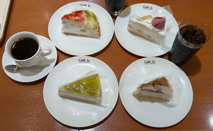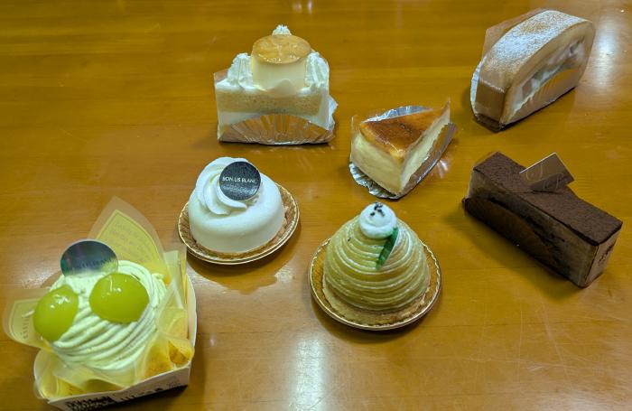 真理子は苺のフルーツズコットとイチゴのショート、僕はイタリア栗のモンブランズコット、三男はシャインマスカットのレアチーズケーキ。