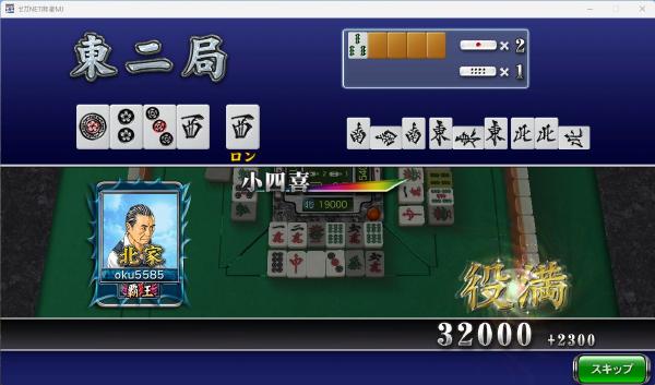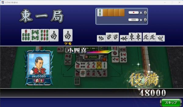 先週、ネット麻雀で役満が出たばかりなのに昨夜も出た!
