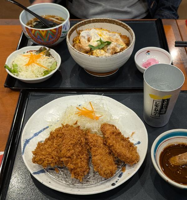 献血の後、水分補給のためかつ兵衛で昼食タイム。