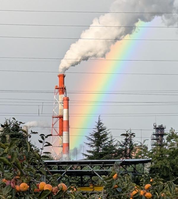 昨日、14時と15時50分ごろに雲の合間に虹が見えた。