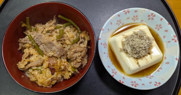 昨日の夜はつゆだくの牛丼と冷奴だった。