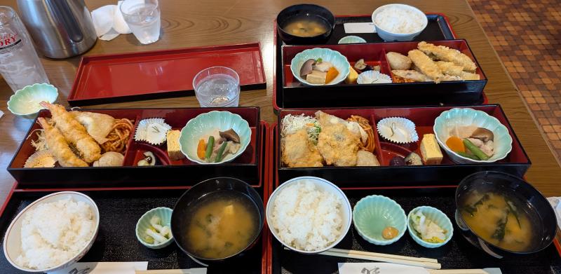 僕はヒレカツ弁当定食、真理子はえびフライのほろ馬車弁当、母はいわし弁当。(各税込1,200円)