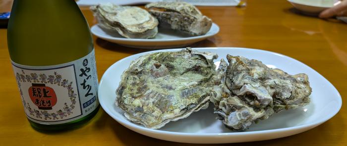 今シーズン初の牡蠣は少し小ぶりだったが味は最高で日本酒がどんどんススムくん。