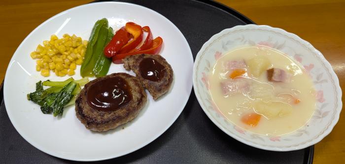 昨日の夜はハンバーグと誕生日だった長男嫁のリクエストのシチューだった。