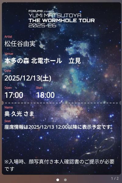 チケプラから12月13日(土)の松任谷由実コンサートの案内が届いた。