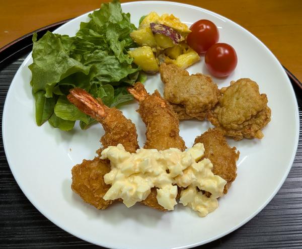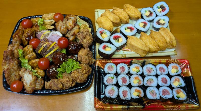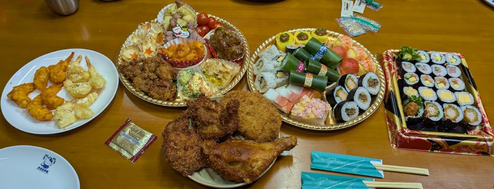 昨日の夜は芝寿しのサンタパック、フライドチキン、トンカツ、エビチリ、エビマヨだった。