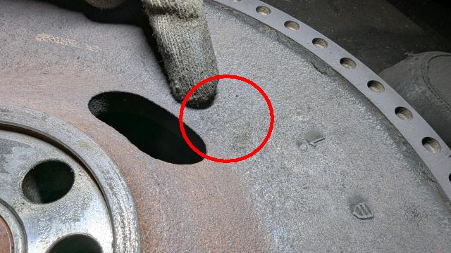 昨日、長男がいすゞの4tダンプのクラッチ交換をしていたらフライホイールが割れているのを発見した。