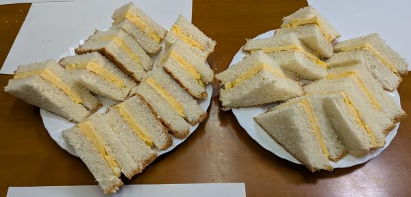 厚切りパンに玉子、チーズ、マヨネーズを挟んだサンドイッチは実に美味しかった。