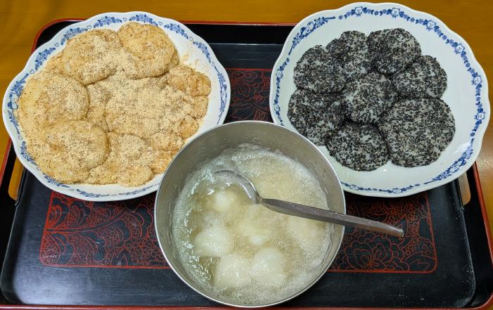 今日のお昼はつきたてのやわらかい餅だった。