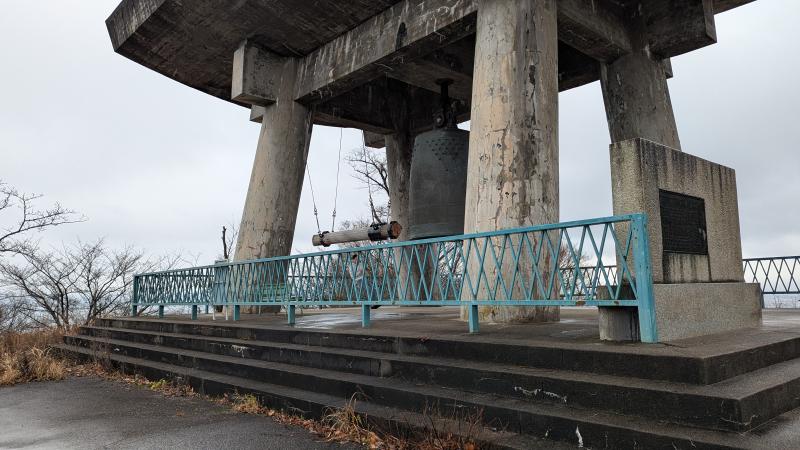 配り終えた後、万葉ラインを伏木側から上ったら平和の鐘まで行くことができた。