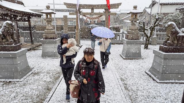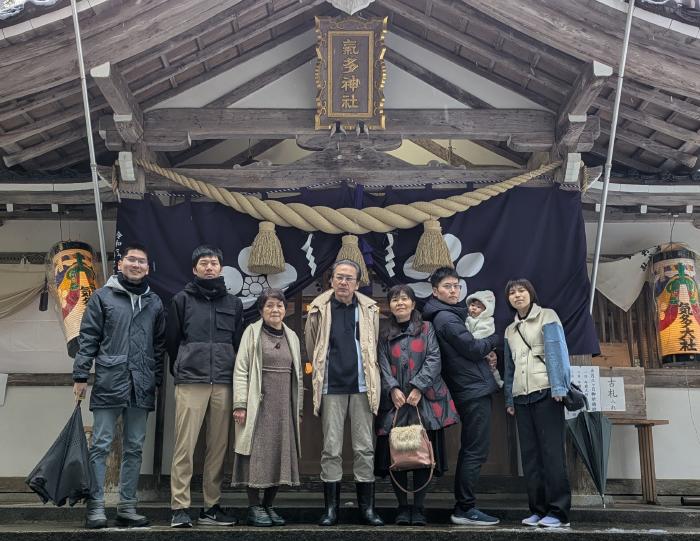 朝8時、雪の降る中家族8人で地元のお宮さんと気多神社へ初詣に行ってきた。