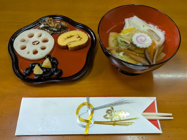 帰宅後、事務所の神棚、家の仏壇と神棚にお参りをして真理子手作りの雑煮を頂いた。