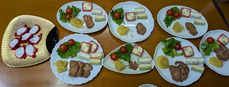 夜は酢だこ、焼き豚、手作り栗きんとん