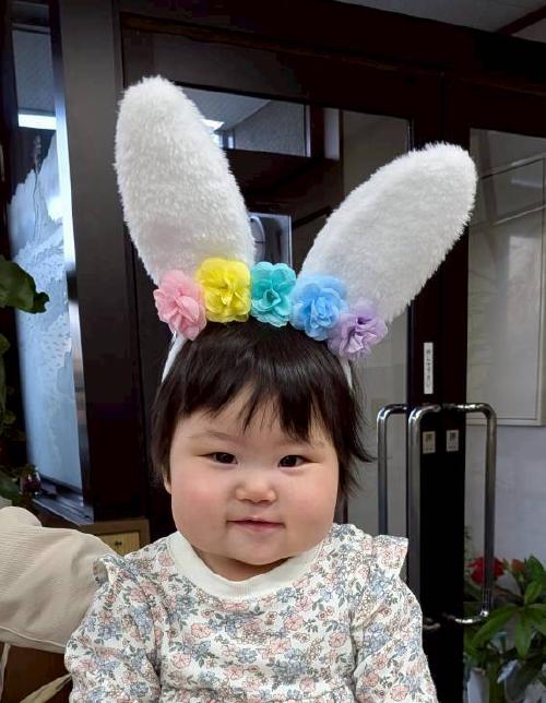 長男嫁が春乃ちゃんにウサ耳カチューシャを買ってきた。